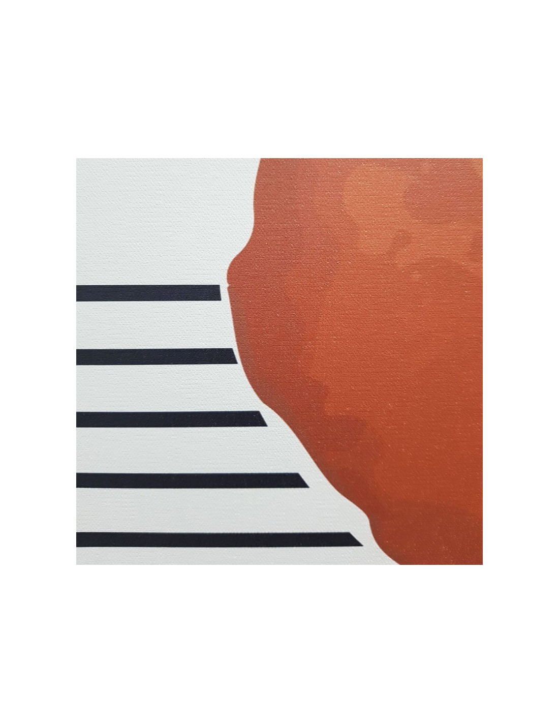 Cuadro decorativo de diseño minimalista con un círculo rojo en el centro y líneas negras en el fondo. Es un lienzo de estilo nórdico, ideal para decorar tu salón y crear un díptico decorativo.
